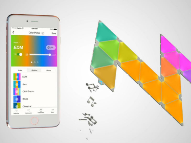 Aurora Rhythm оснащен встроенным микрофоном, который улавливает звучащую в помещении музыку. Затем умное устройство распознает её биты и мелодии и, в соответствии с полученными данными, дает панелям команду на смену цветов, оттенков и яркости. Совместно с модулем умная система освещения создает в доме атмосферу уюта и волшебства и сделает яркой любую вечеринку.