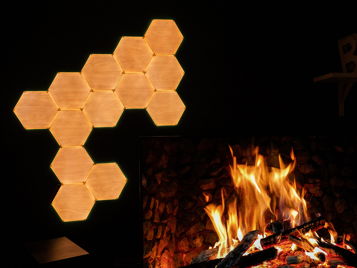У Nanoleaf Elements есть 11 готовых сцен освещения: от воссоздания уютного ощущения пылающего угля до имитации водопада. Наполните пространство динамическим освещением, чтобы создать идеальную атмосферу для отдыха или вдохновения. Через приложение вы также можете настроить свои собственные режимы или включить режим синхронизации с музыкой, чтобы обстановка идеально сочеталась с любимым джазом или плейлистом из кофейни.