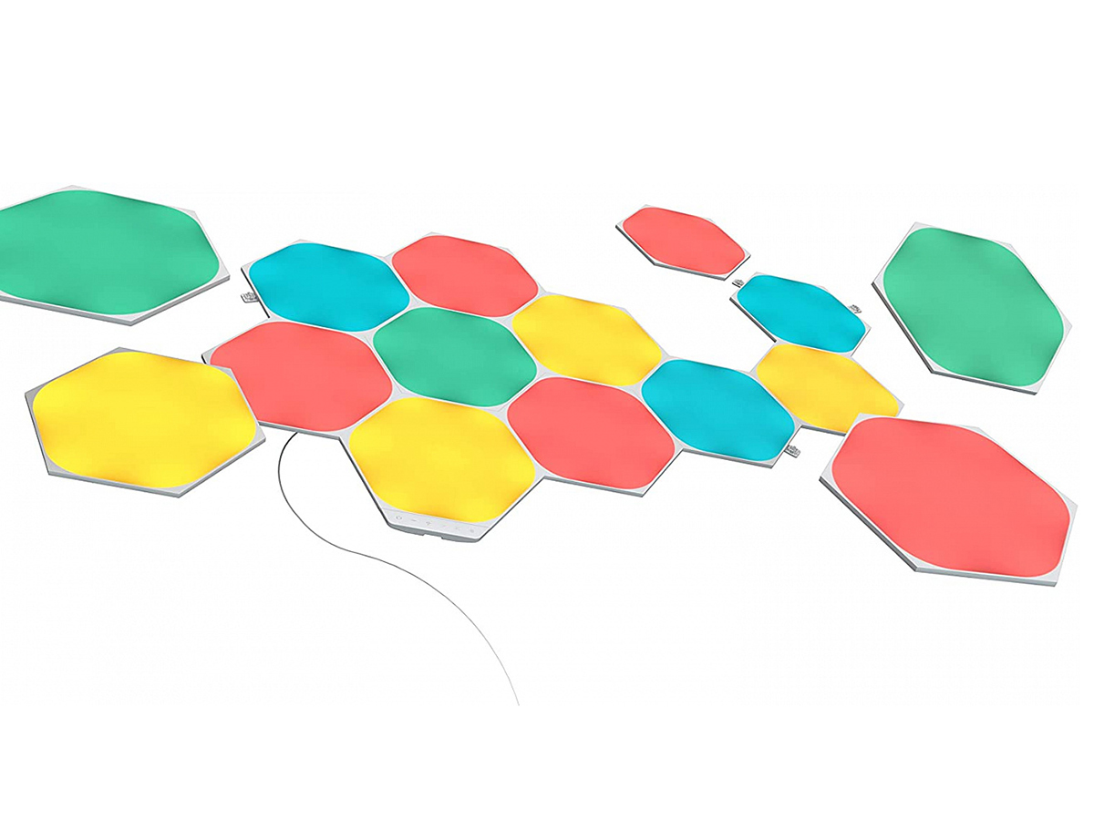 Nanoleaf Shapes Hexagon Starter Kit (15 панелей)— это базовый комплект из пятнадцати светильников умной системы освещения. Набор легко собирается и устанавливается, умеет менять цвет в такт музыке и подходит для создания целого панно из светящихся элементов.