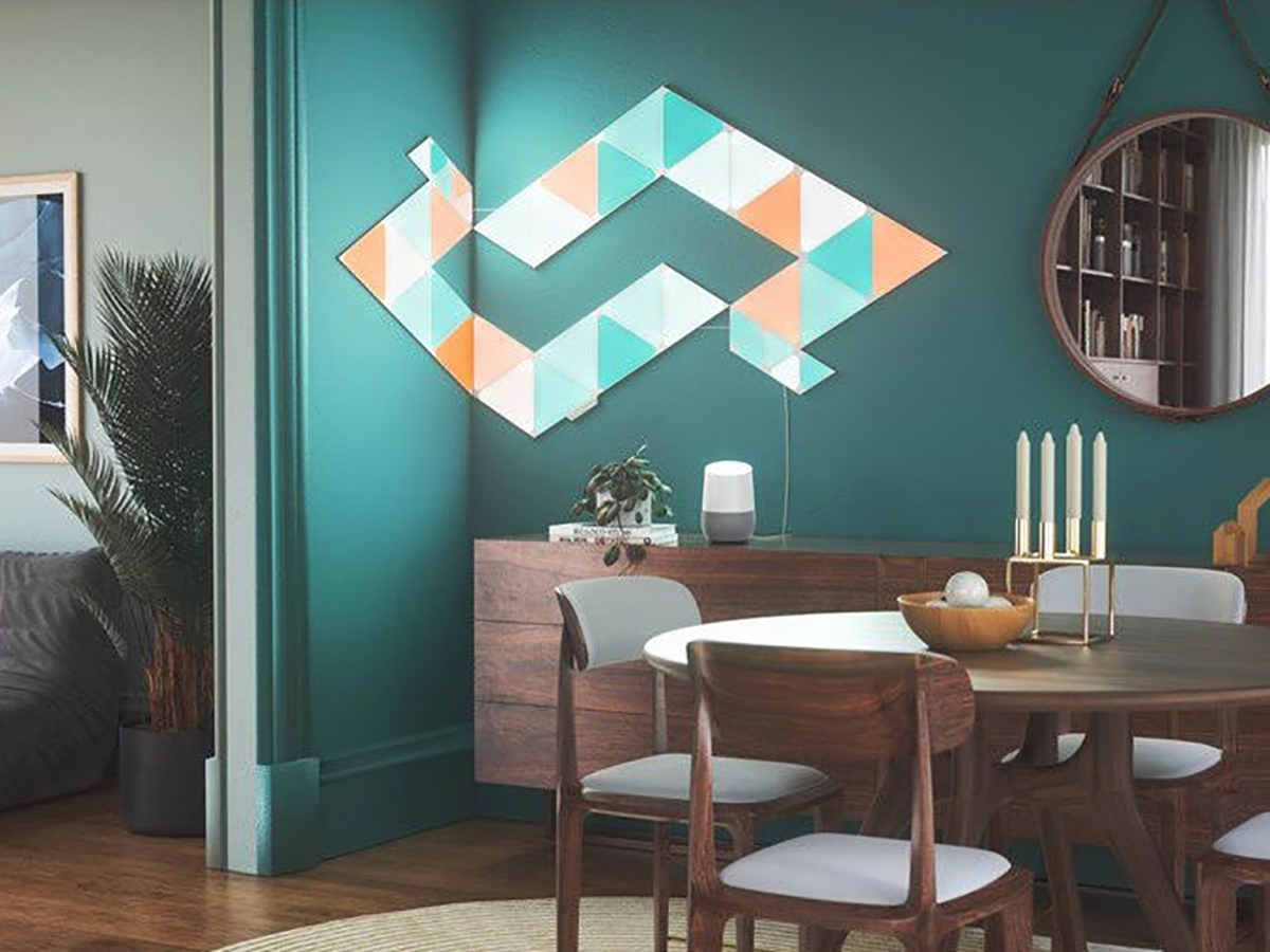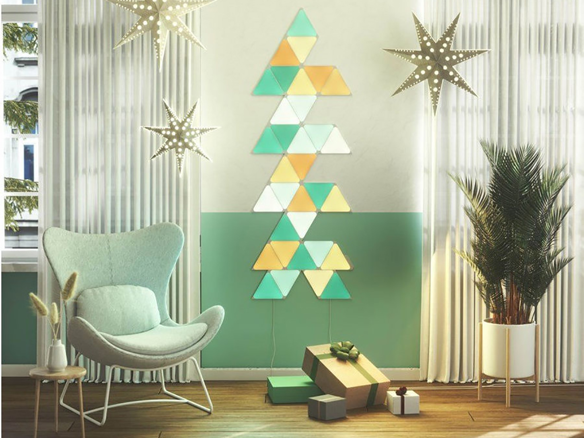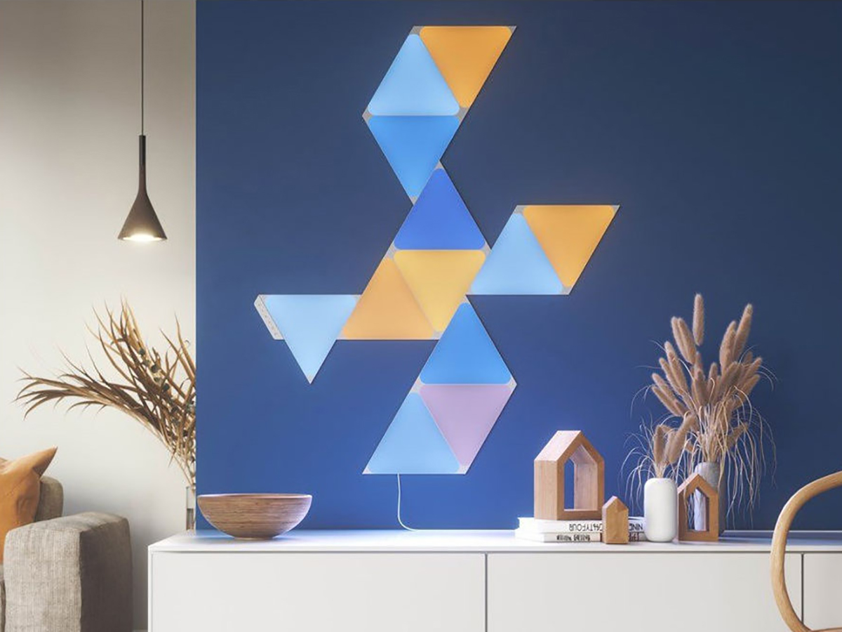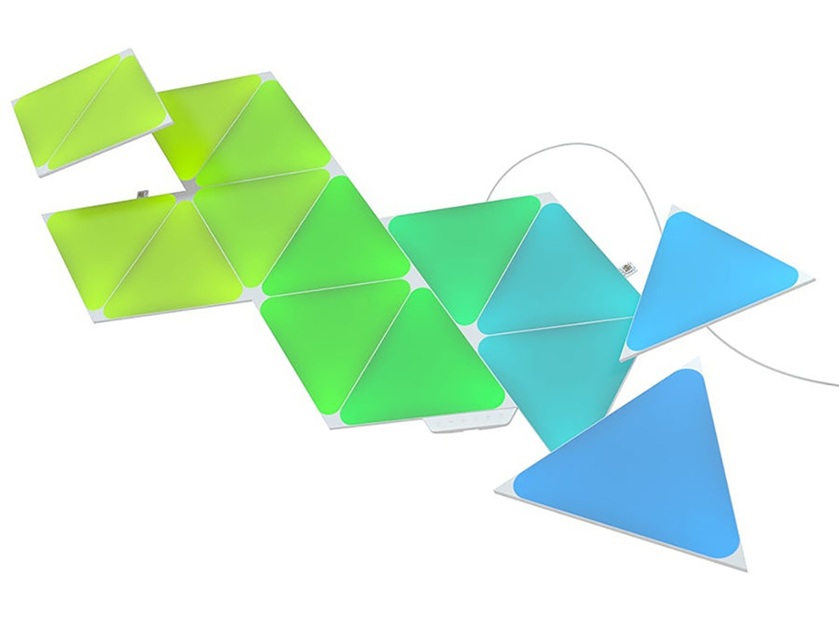 Nanoleaf Shapes Triangles Starter Kit (15 панелей) — это базовый комплект из пятнадцати светильников умной системы освещения. Набор легко собирается и устанавливается, умеет менять цвет в такт музыке и подходит для создания панно из светящихся элементов.