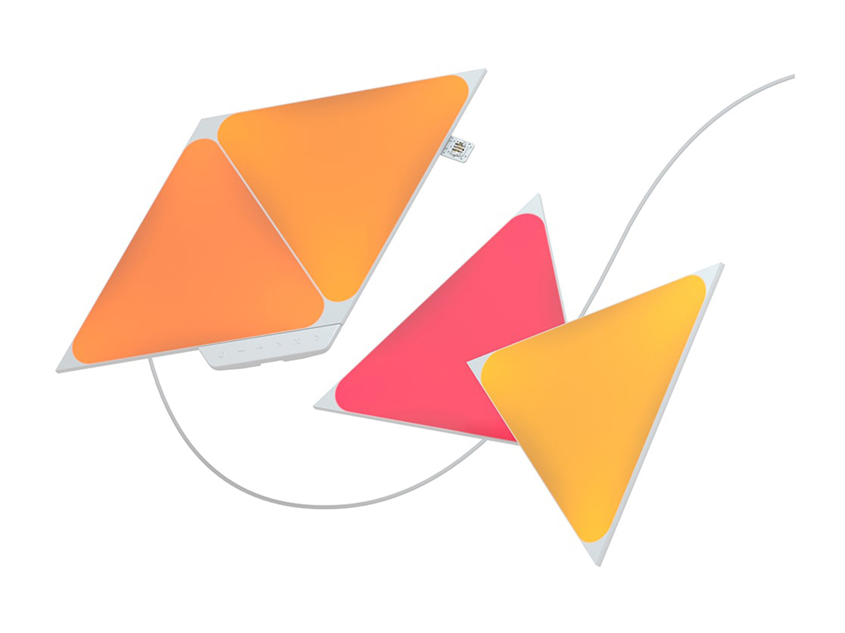 Nanoleaf Shapes Triangles Starter Kit (4 панели) — это базовый комплект из четырех светильников умной системы освещения. Набор легко собирается и устанавливается, умеет менять цвет в такт музыке и подходит для создания панно из светящихся элементов.