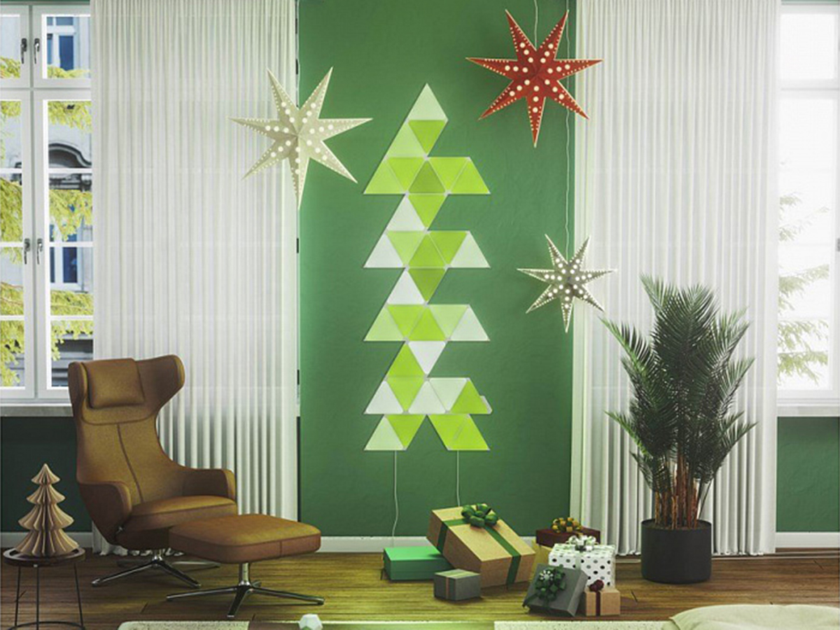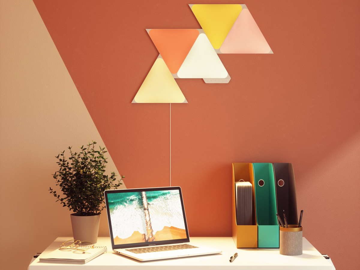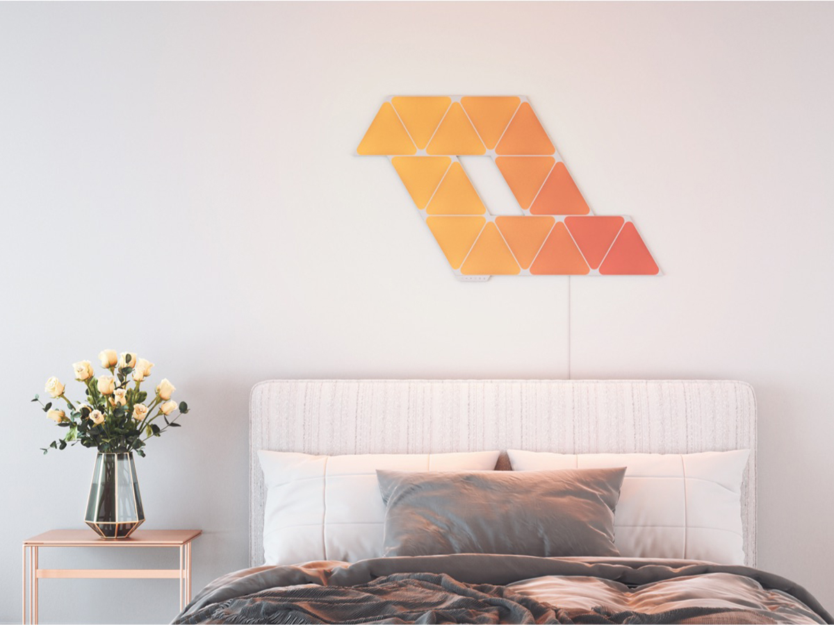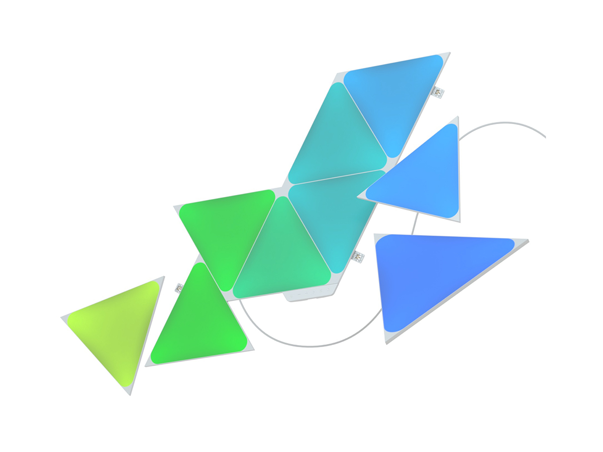 Nanoleaf Shapes Triangles Starter Kit (9 панелей) — это базовый комплект из девяти светильников умной системы освещения. Набор легко собирается и устанавливается, умеет менять цвет в такт музыке и подходит для создания панно из светящихся элементов.
